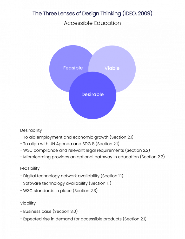 However, despite the surge of education technology there are deficiencies in online accessibility for those who have physical and cognitive considerations. According to Botelho, (2021) these are rooted in digital, physical, legal, social and economic factors. Accessibility issues are therefore not only considerations for designers, but for a wide variety of decision and policy makers if the goals of UN 2030 Agenda are to be sustained. Demands on accessibility however are set to increase over the next thirty years, where it is estimated that half of the world’s population will be affected by some degree of disability (WHO, 2024).