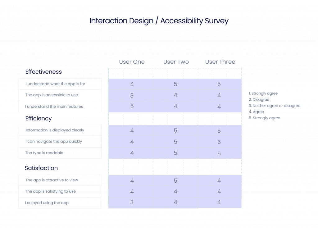 Testing in design is an iterative process rather than being an end consideration, through its formation and summation (Barnum, 2021). The earlier stage of the design process evaluates the user through the profile of market research, personas and empathy maps to ensure that the correct target audience is identified. Towards the end of the project, the designer strives to understand how the user interacts with the design through its prototype and mock up to assess whether the design has fulfilled its desired intention. The audience for accessibility is varied and it may not be possible to fulfil individual needs due to its complexity. Mahlke (2008) posits that users define their experiences through interactive system properties, user characteristics and context parameters, suggesting that it depends not only on the interactivity but the user and the context of the engagement. In the limited scope of this project, the testing is mapped against the International Standards Organisation (ISO) who define usability to the extent a product, system or service can be used by specified users to achieve effectiveness, efficiency and satisfaction in a specified context of use (ISO.org – 9241-11:2018).