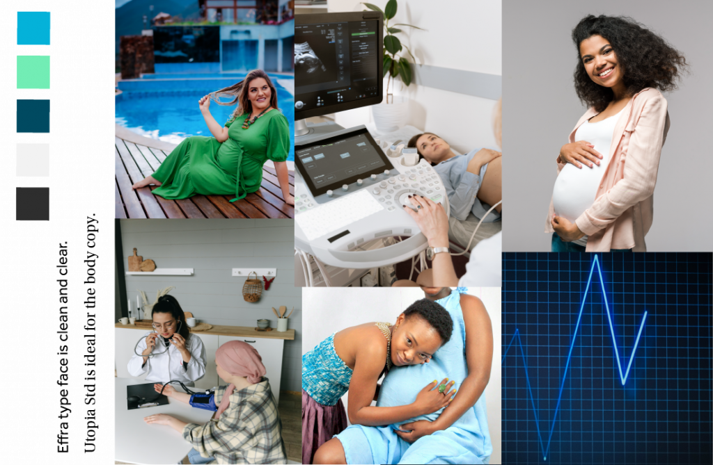 The language of the app was also considered (Fig.17). This identifies the character – the app provides practical , medical based support to help women have control over their own health. This may be achieved by tracking their blood pressure throughout pregnancy to protect their baby. This helps to ensure that the direction of the app stays in alignment with its outcome.