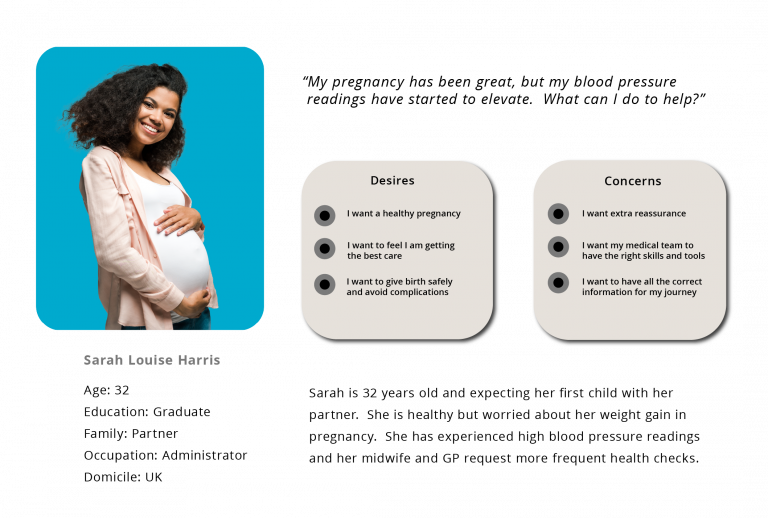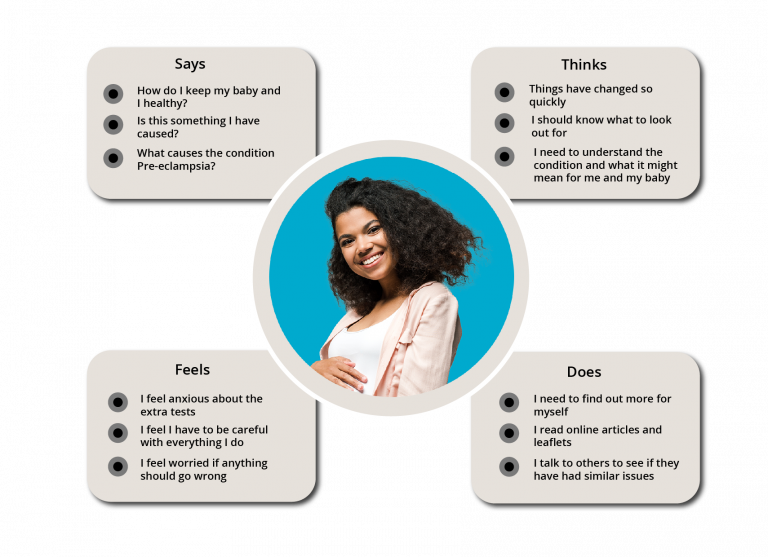 The user persona and empathy map are based on user stories and accounts from The Pre-eclampsia Foundation (2023).